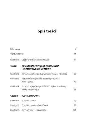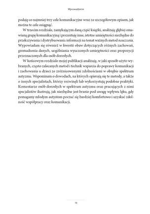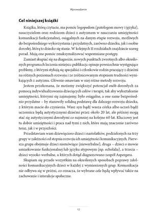 Niniejsza książka pomoże logopedom, terapeutom, nauczycielom i rodzicom dzieci z autyzmem dostosować sposób postępowania do osoby. Autorka dzieli się ekspercką wiedzą zgromadzoną podczas wieloletniej pracy z osobami ze spektrum autyzmu. Dzięki przedstawieniu przypadków chłopców i dziewczynek na różnych etapach rozwoju mowy czytelnik łatwiej określi, jakie cele i strategie będą najkorzystniejsze dla konkretnego dziecka: