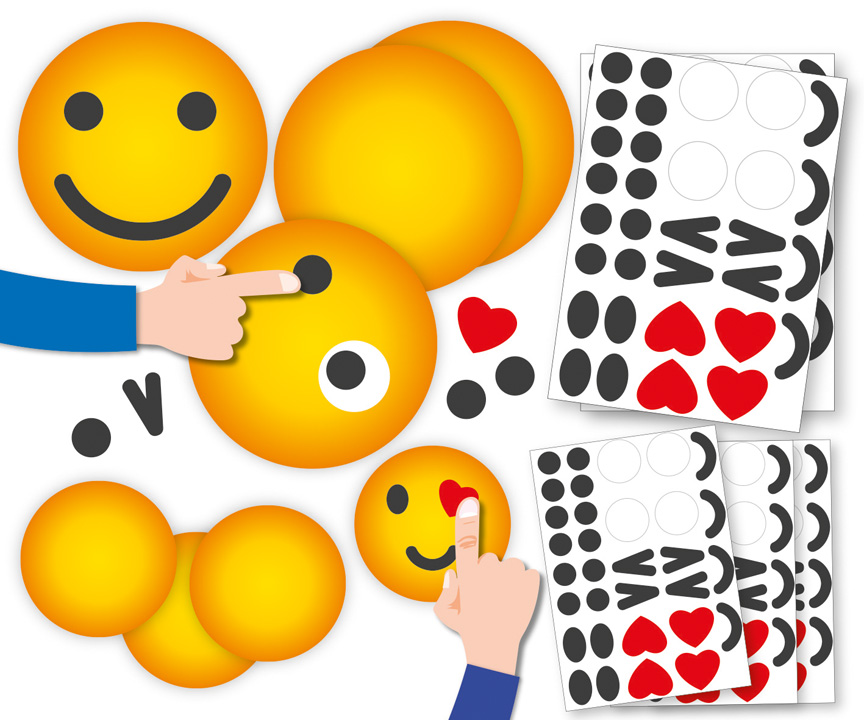- 1 komplet naklejek do przyklejenia na dużych kartonikach-twarzach,