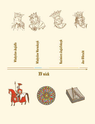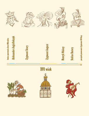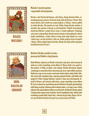 - 32 ilustrowane wierszyki o każdym z władców, na rozkładówkach
